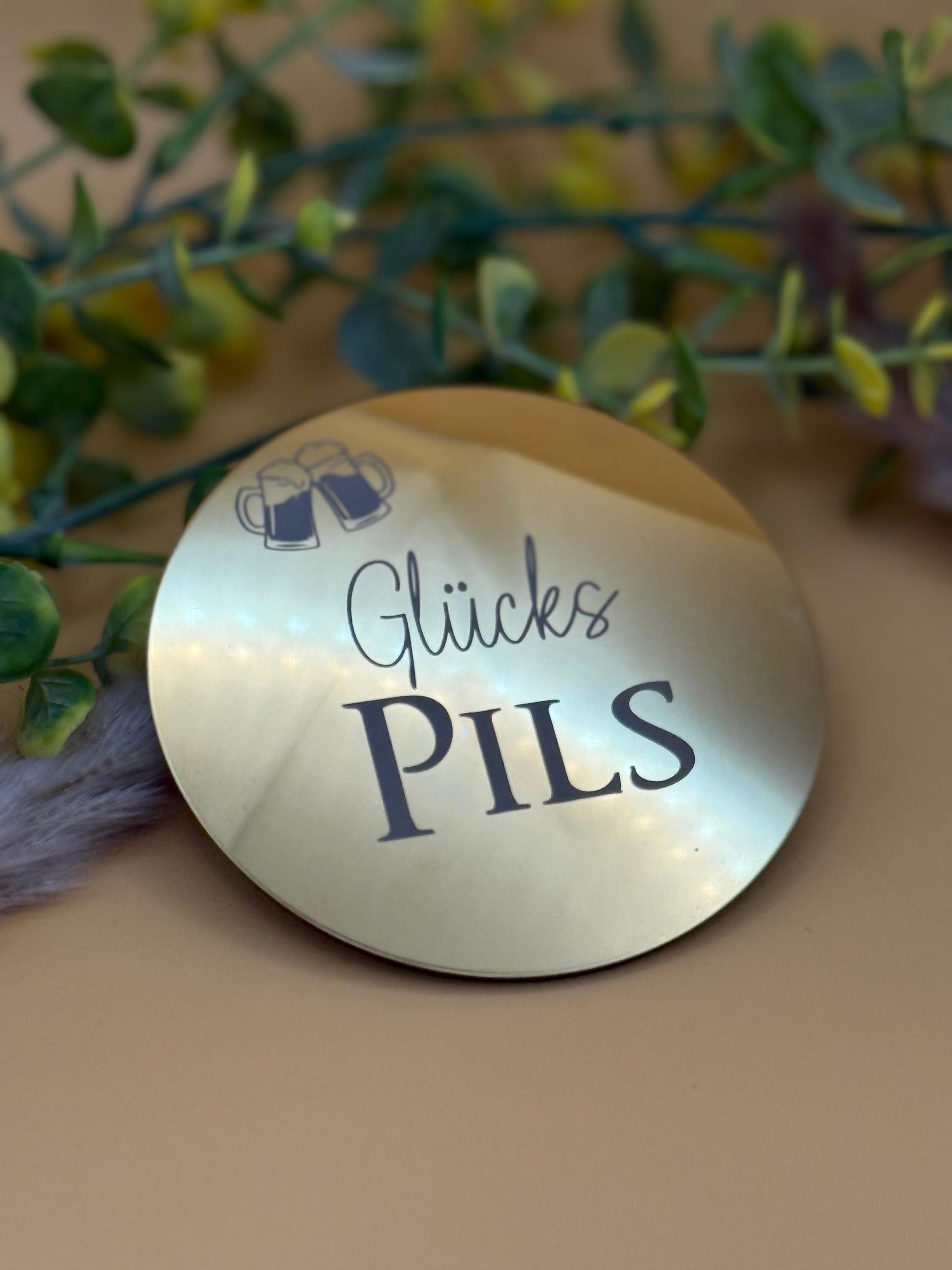 Ob Aperol-Spritz, Bier oder Apfelwein, den passenden goldenen Untersetzer kriegst du hier.