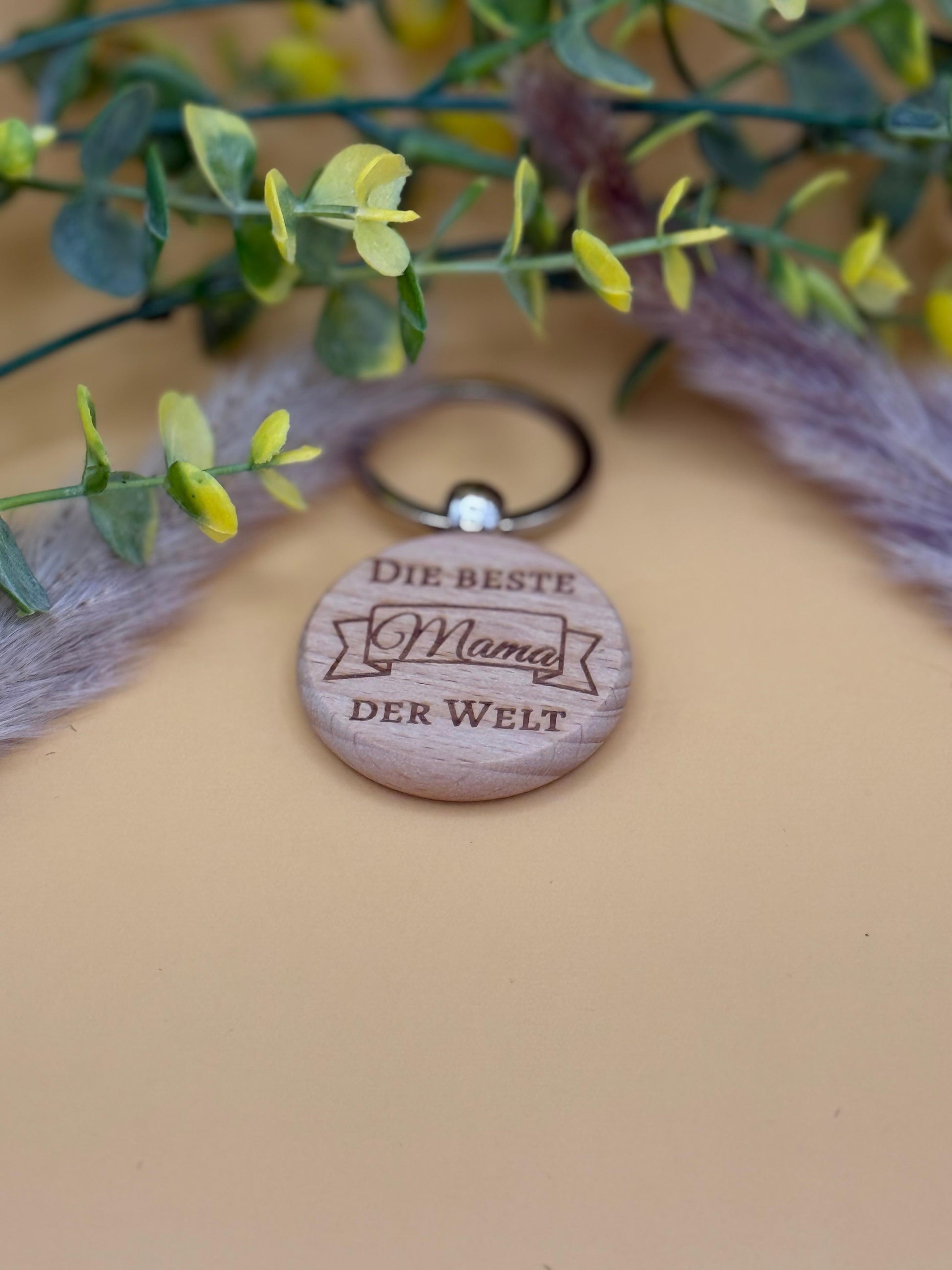 Unsere runden Schlüsselanhänger aus Holz sind das perfekte kleine Geschenk mit Herz!